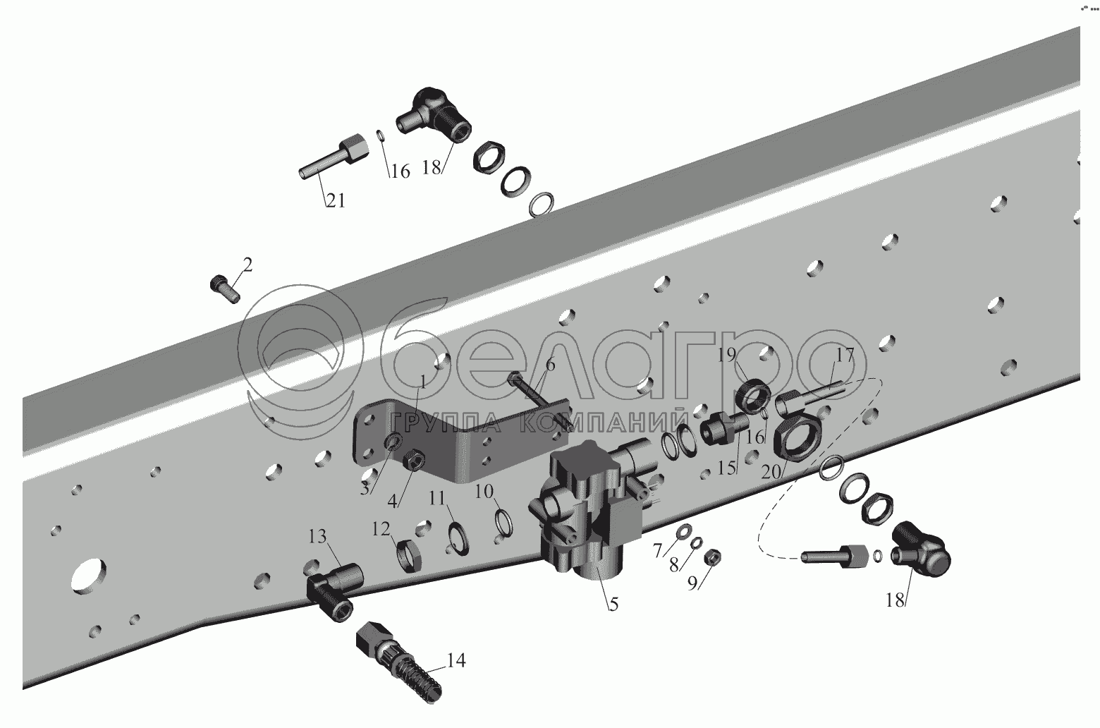 Каталог запасных частей к технике: МАЗ-530905. Установка передних модуляторов и присоединительной арматуры