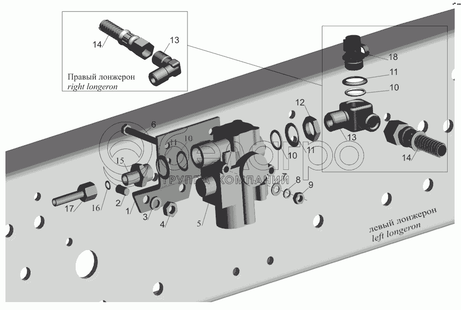 Каталог запасных частей к технике: МАЗ-530905. Установка передних модуляторов и присоединительной арматуры