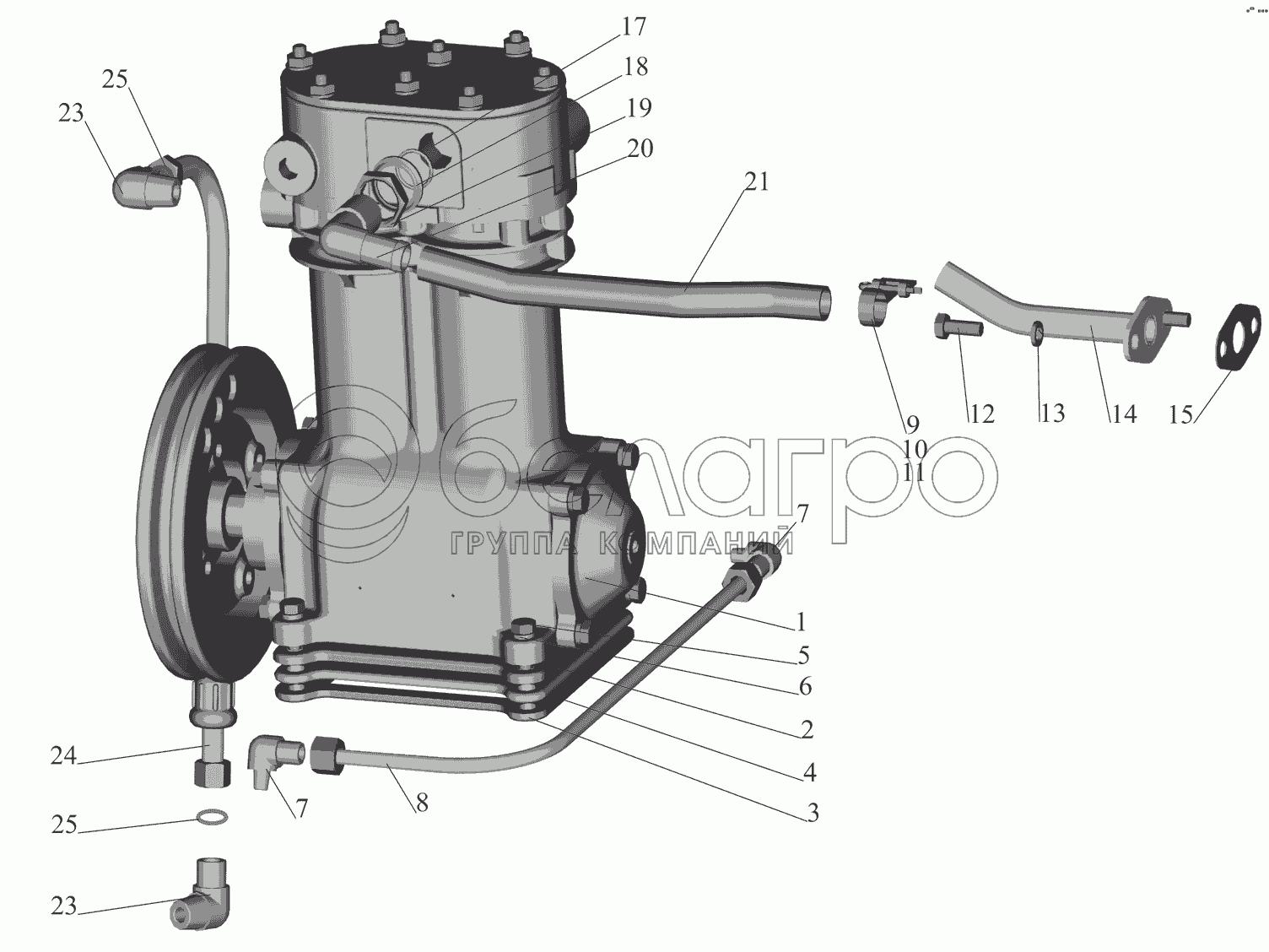 Каталог запасных частей к технике: МАЗ-530905. Установка пневмокомпрессора 642208-3500014
