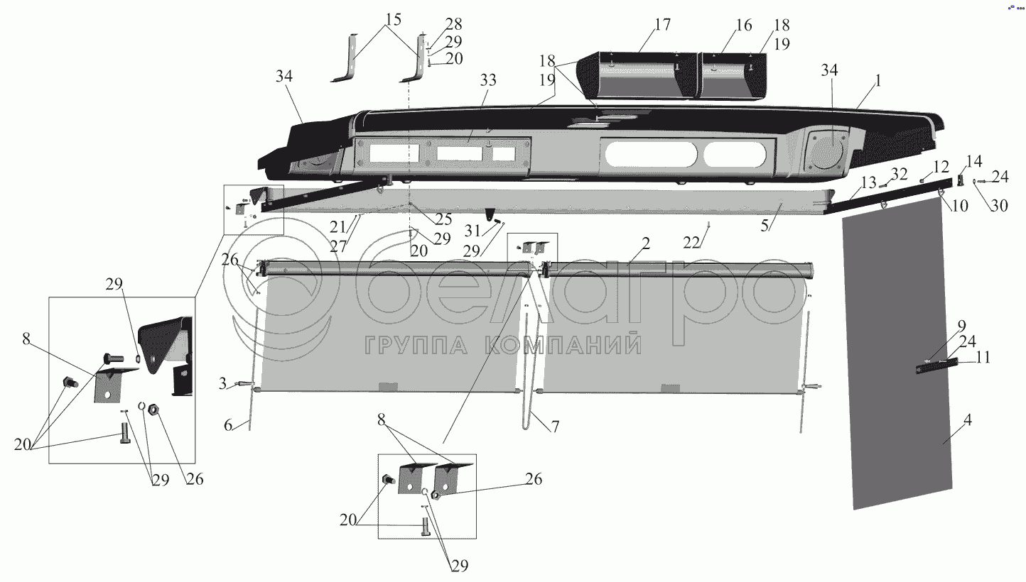 Каталог запасных частей к технике: МАЗ-530905. Установка полки и штор 6501-8200034