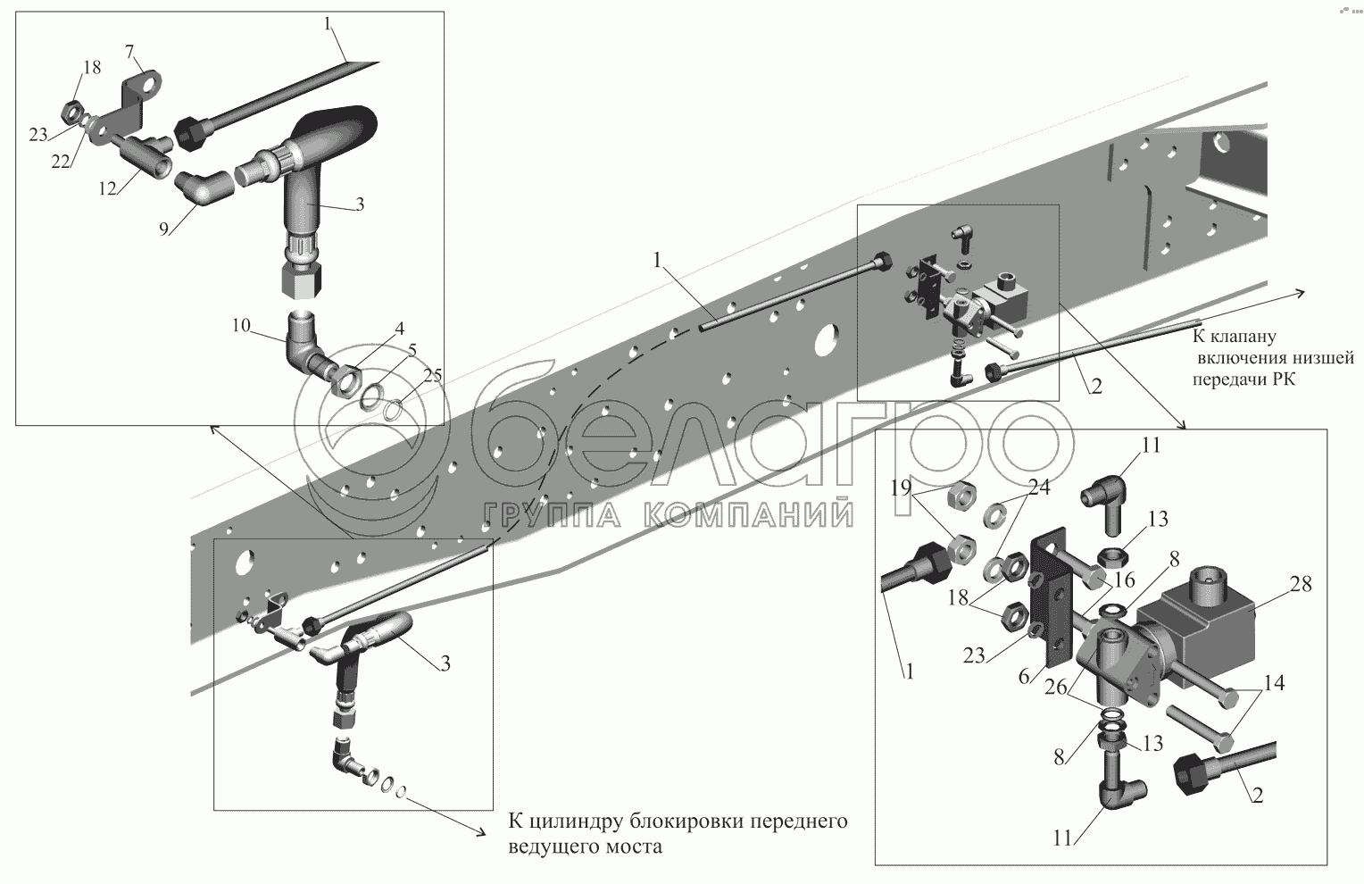 Каталог запасных частей к технике: МАЗ-530905. Установка привода управления блокировкой 5309-2300024
