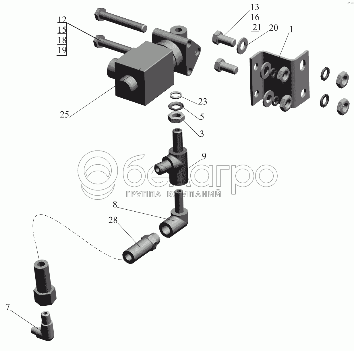 Каталог запасных частей к технике: МАЗ-530905. Установка привода управления блокировкой 5309-2400024