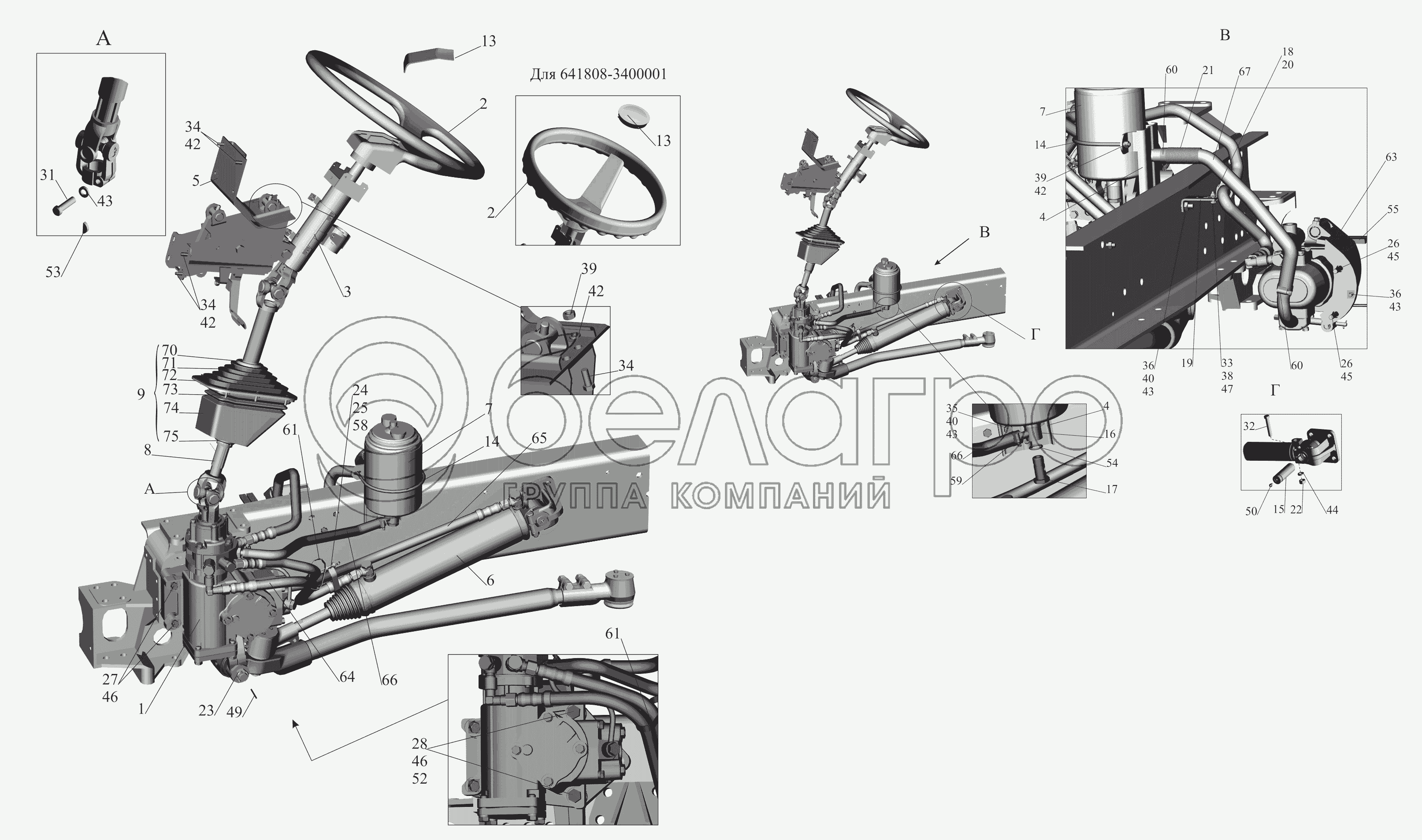 Каталог запасных частей к технике: МАЗ-530905. Установка рулевого управления 6418-3400001, 641808-3400001
