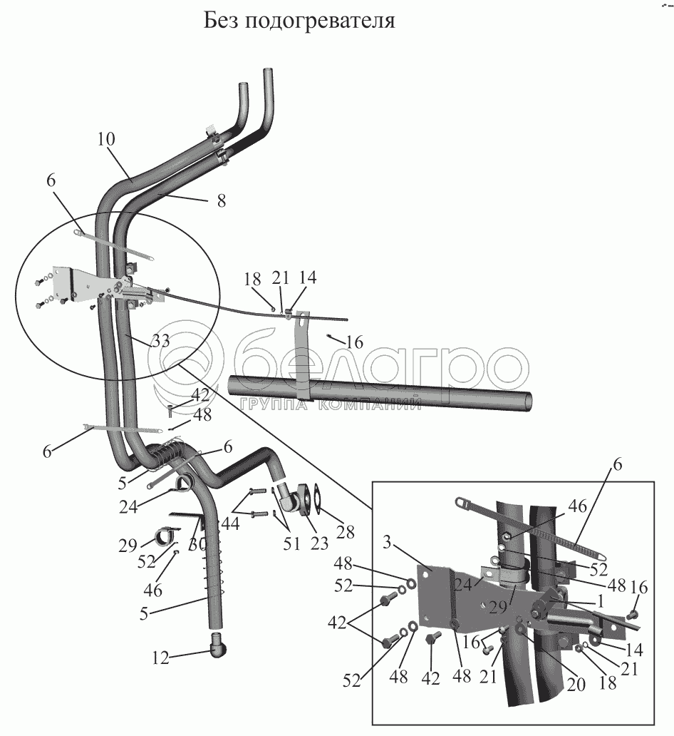 Каталог запасных частей к технике: МАЗ-530905. Установка шлангов отопителя 643008-810006