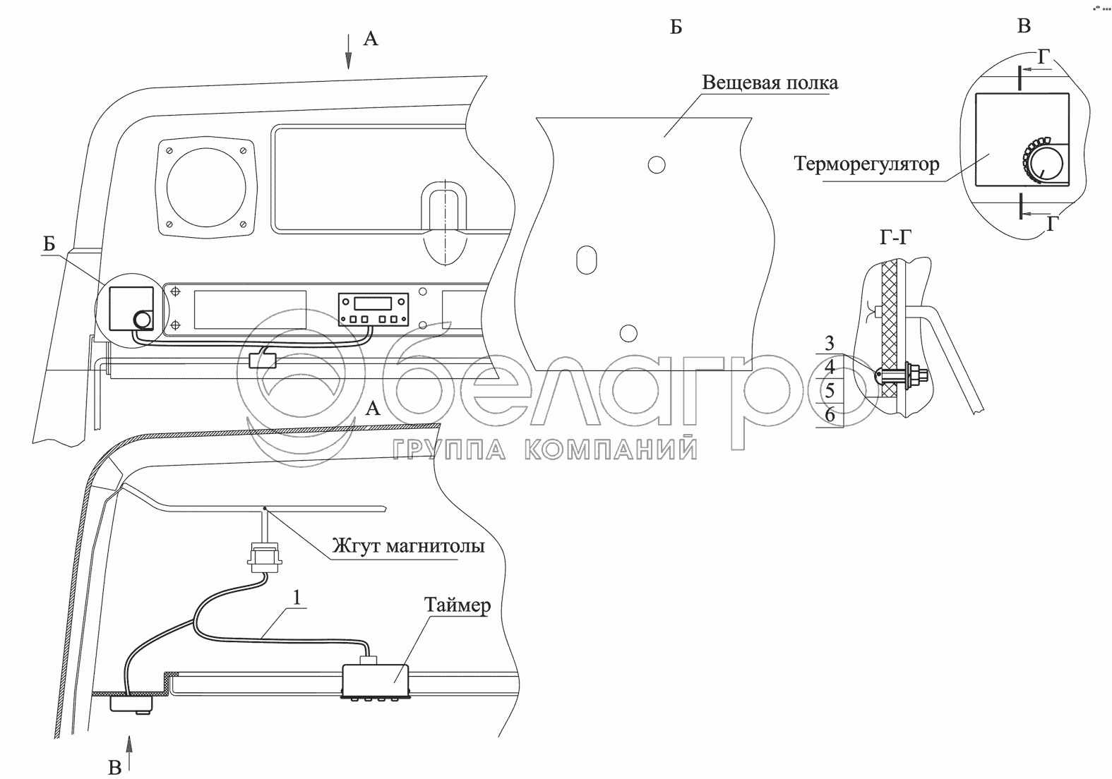 Установка электрооборудования независимого воздушного отопителя 6501-3700088-010