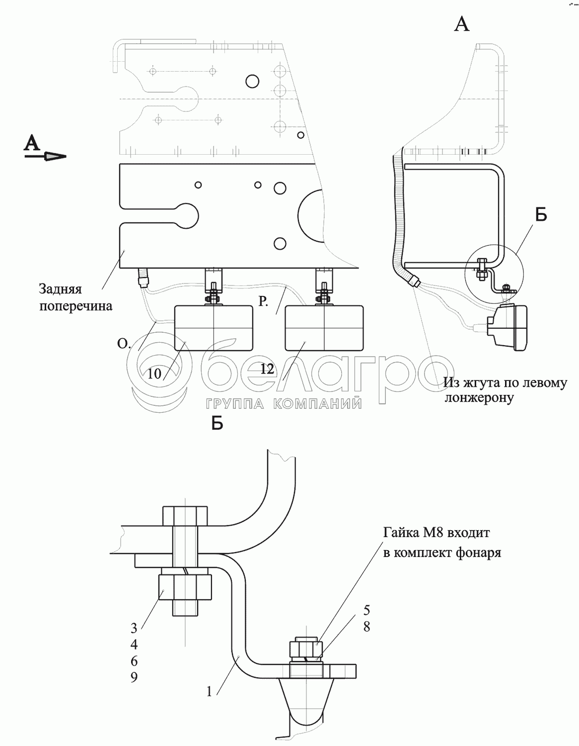 Каталог запасных частей к технике: МАЗ-530905. Установка заднего противотуманного фонаря 530905-37000112