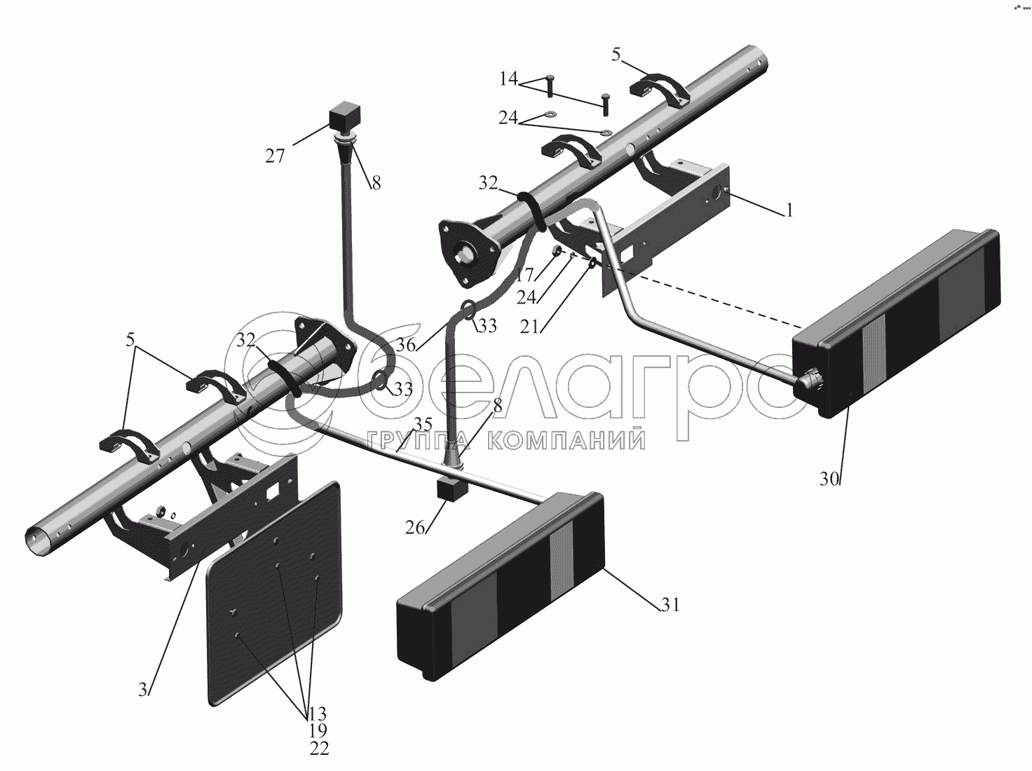 Каталог запасных частей к технике: МАЗ-530905. Установка задних фонарей 6501-3700009 (-700)