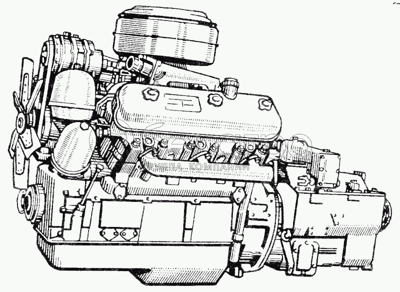 Двигатель с оборудованием (без сцепления и коробки передач) в сборе