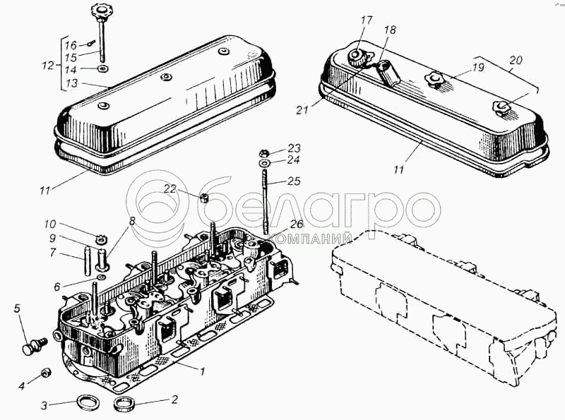Каталог запасных частей к технике: МАЗ-5335. Головка блока цилиндров