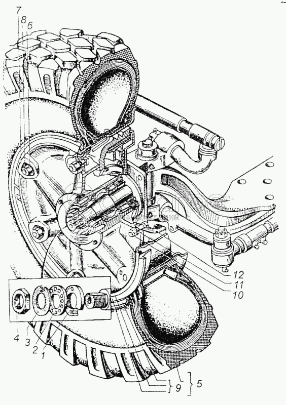 Каталог запасных частей к технике: МАЗ-5335. Крепление переднего колеса
