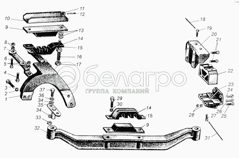 Каталог запасных частей к технике: МАЗ-5335. Крепление силового агрегата