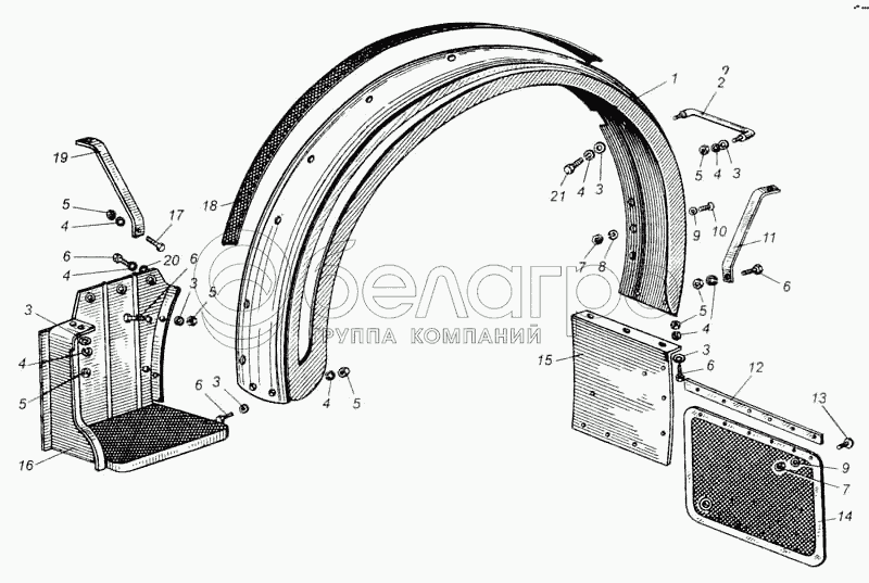 Каталог запасных частей к технике: МАЗ-5335. Крыло переднее и подножка