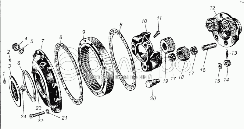 Каталог запасных частей к технике: МАЗ-5335. Передача колесная заднего моста