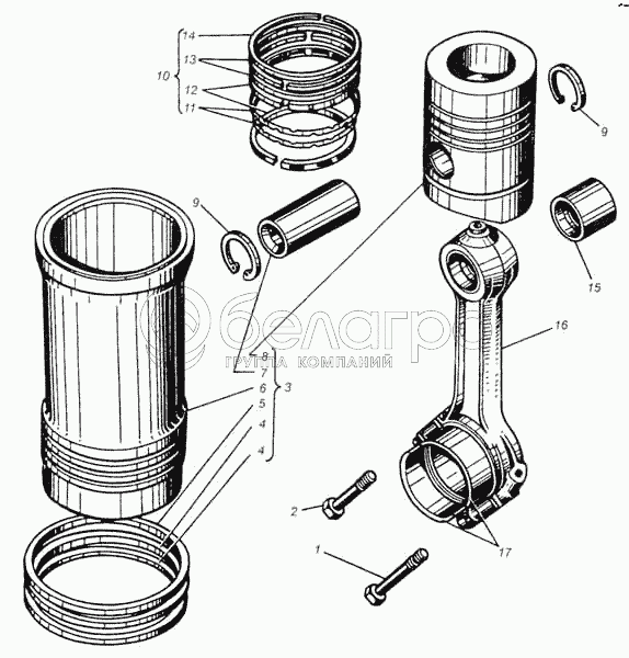 Каталог запасных частей к технике: МАЗ-5335. Поршень и шатун