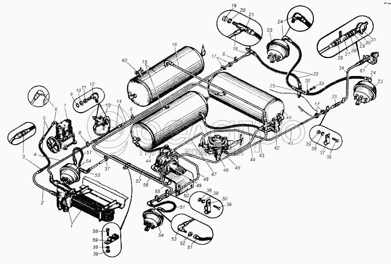 Каталог запасных частей к технике: МАЗ-5335. Привод пневматический тормозов автомобиля МАЗ-5335