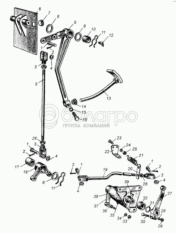 Каталог запасных частей к технике: МАЗ-5335. Привод выключения сцепления