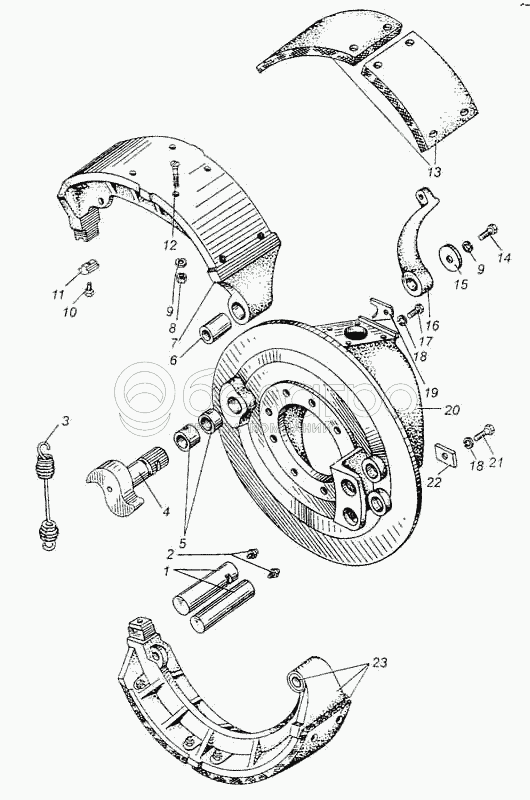 Каталог запасных частей к технике: МАЗ-5335. Тормоз рабочий передний автомобиля МАЗ-509А