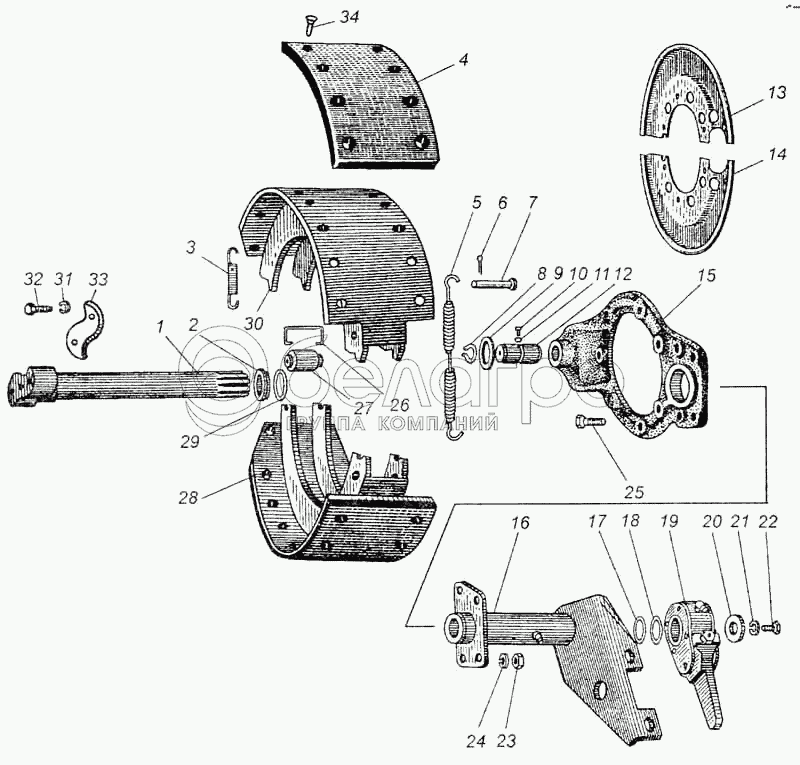 Каталог запасных частей к технике: МАЗ-5335. Тормоз рабочий задний