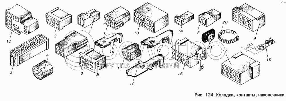 Каталог запасных частей к технике: МАЗ-53363. Колодки, контакты, наконечники