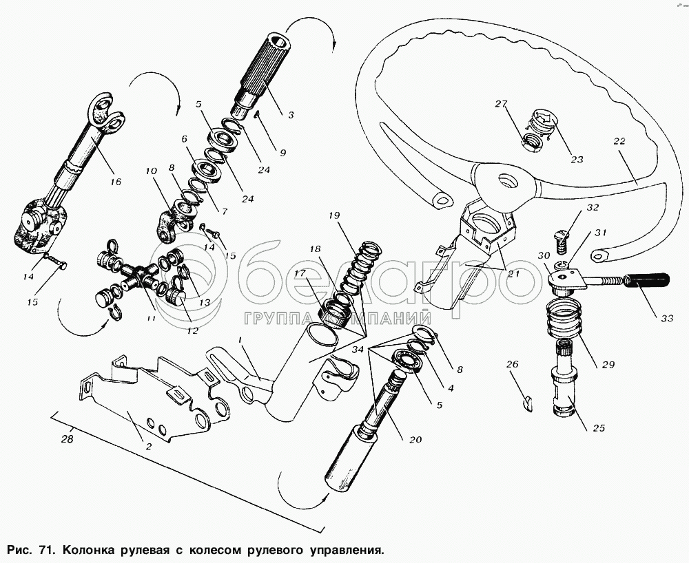Каталог запасных частей к технике: МАЗ-53363. Колонка рулевая с колесом рулевого управления
