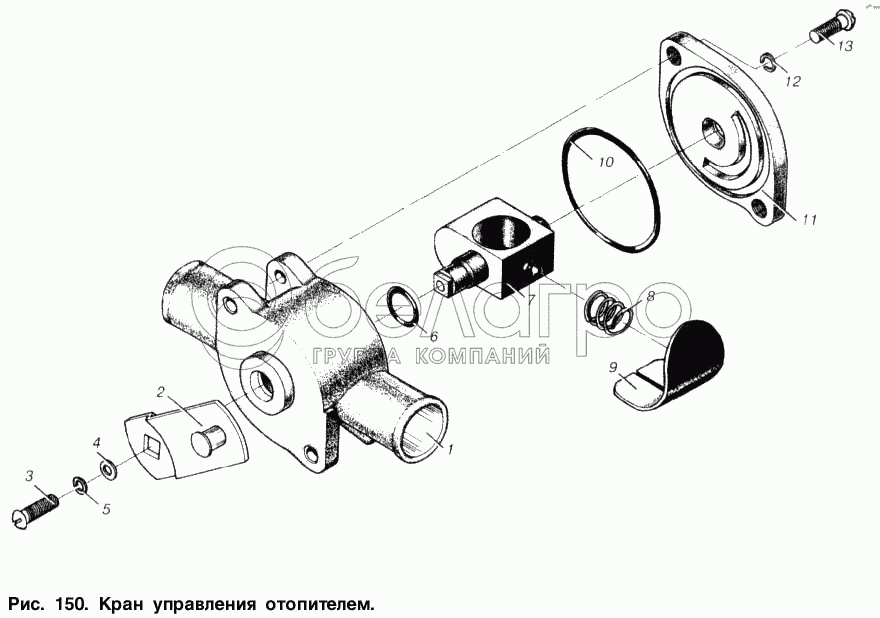 Каталог запасных частей к технике: МАЗ-53363. Кран управления отопителем