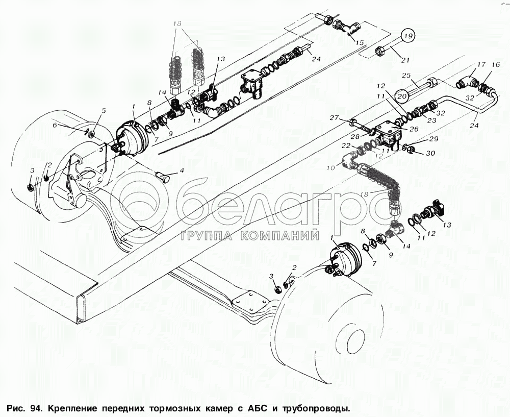 Каталог запасных частей к технике: МАЗ-53363. Крепление передних тормозных камер с АБС