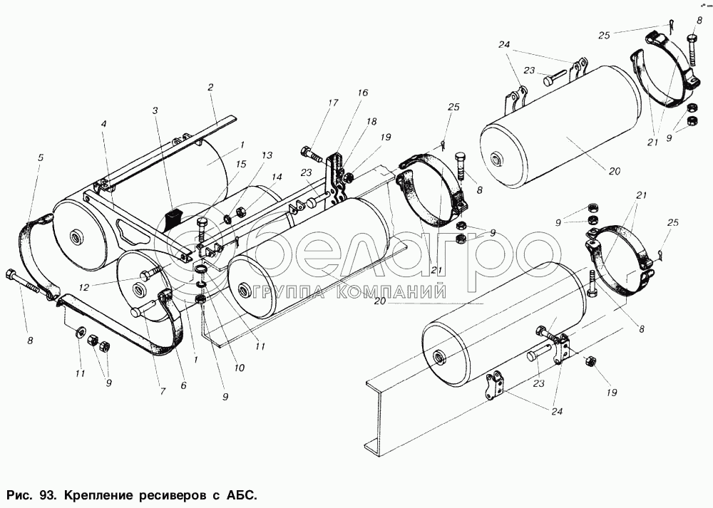 Каталог запасных частей к технике: МАЗ-53363. Крепление ресивером с АБС