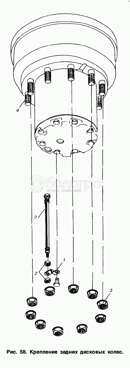 Каталог запасных частей к технике: МАЗ-53363. Крепление задних дисковых колес
