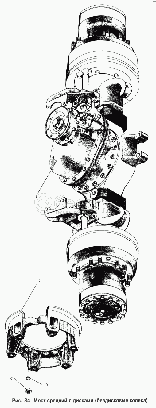 Каталог запасных частей к технике: МАЗ-53363. Мост средний с дисками (бездисковые колеса)