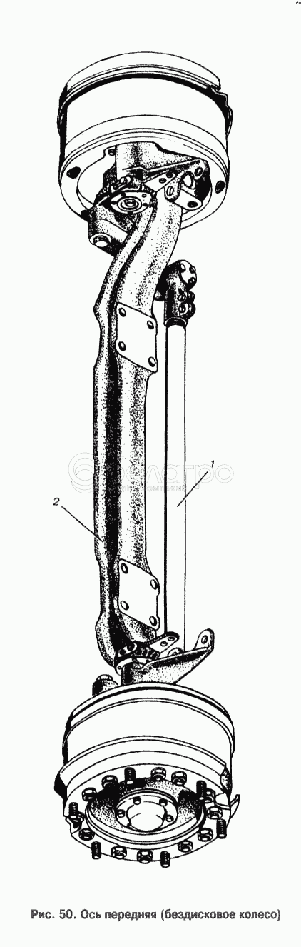 Каталог запасных частей к технике: МАЗ-53363. Ось передняя (бездисковое колесо)
