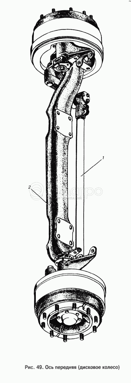 Каталог запасных частей к технике: МАЗ-53363. Ось передняя (дисковое колесо)