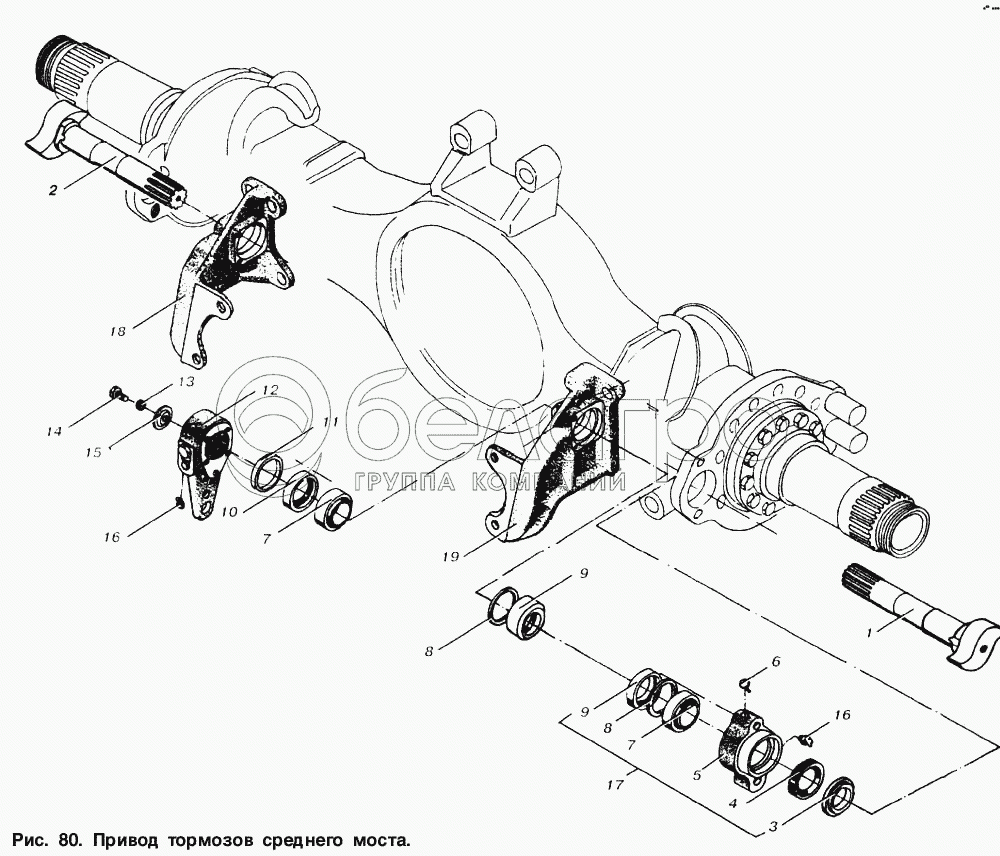 Каталог запасных частей к технике: МАЗ-53363. Привод тормозов среднего моста