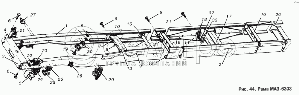 Каталог запасных частей к технике: МАЗ-53363. Рама МАЗ-6303