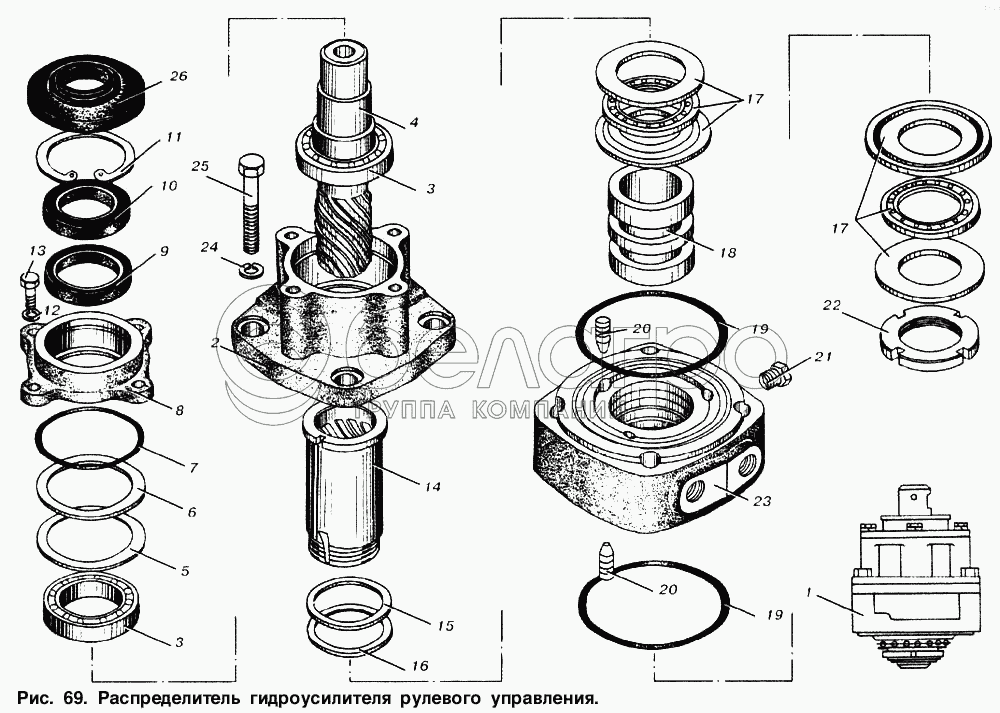 Каталог запасных частей к технике: МАЗ-53363. Распределитель гидроусилителя рулевого управления