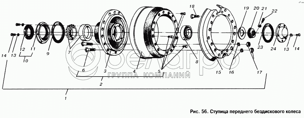 Каталог запасных частей к технике: МАЗ-53363. Ступица переднего бездискового колеса
