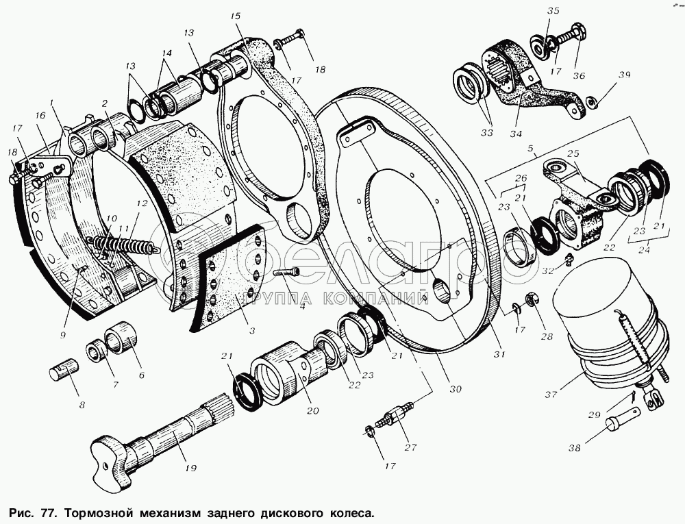 Каталог запасных частей к технике: МАЗ-53363. Тормозной механизм заднего дискового колеса