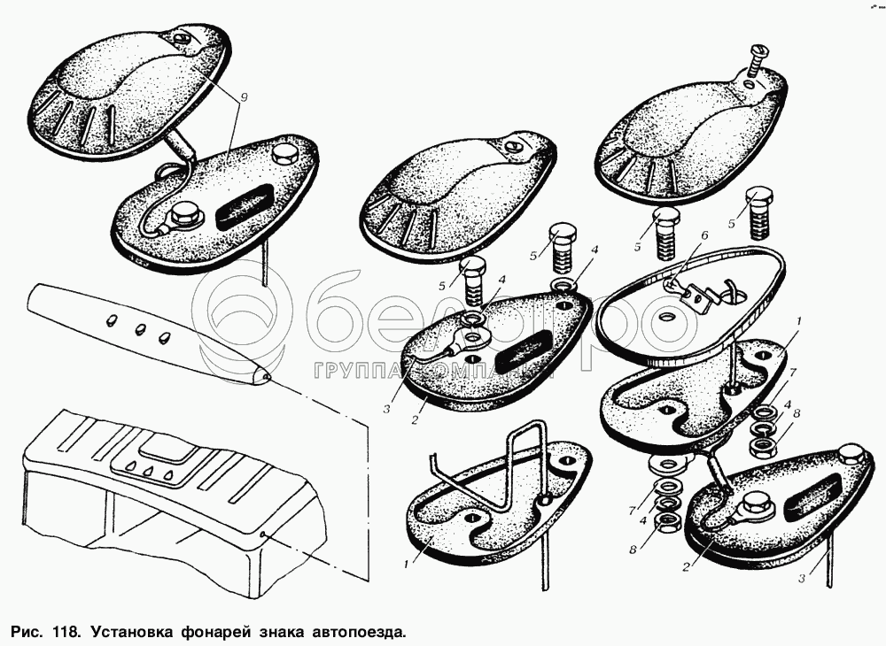 Каталог запасных частей к технике: МАЗ-53363. Установка фонарей знака автопоезда
