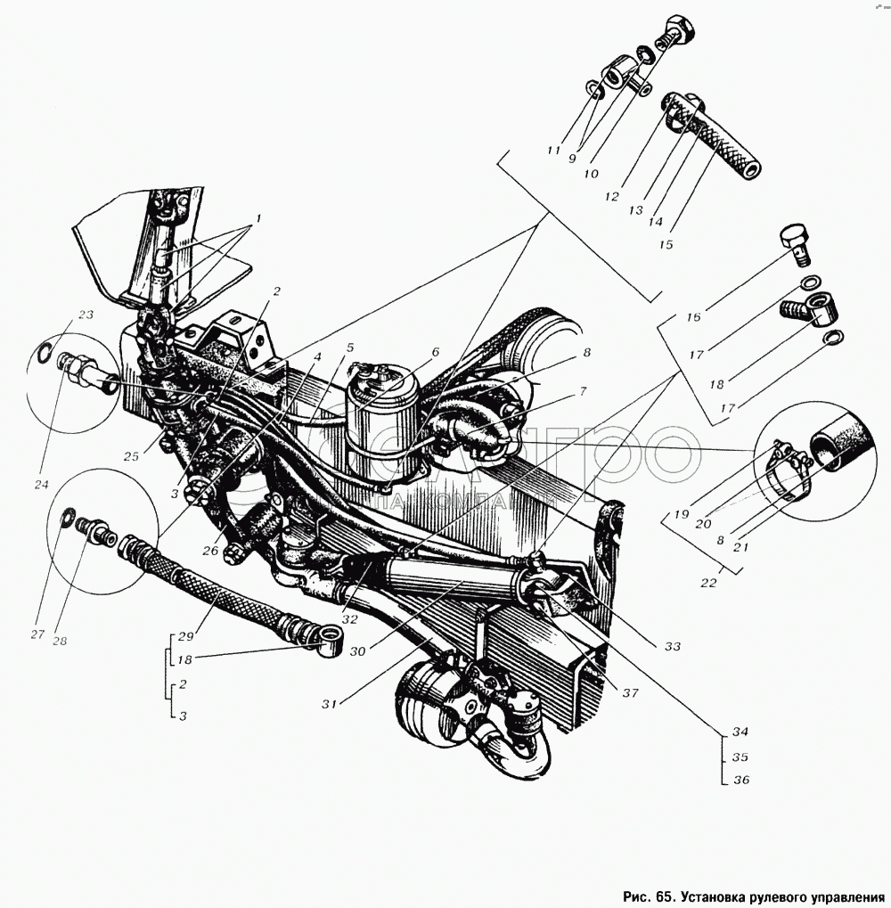 Каталог запасных частей к технике: МАЗ-53363. Установка рулевого управления