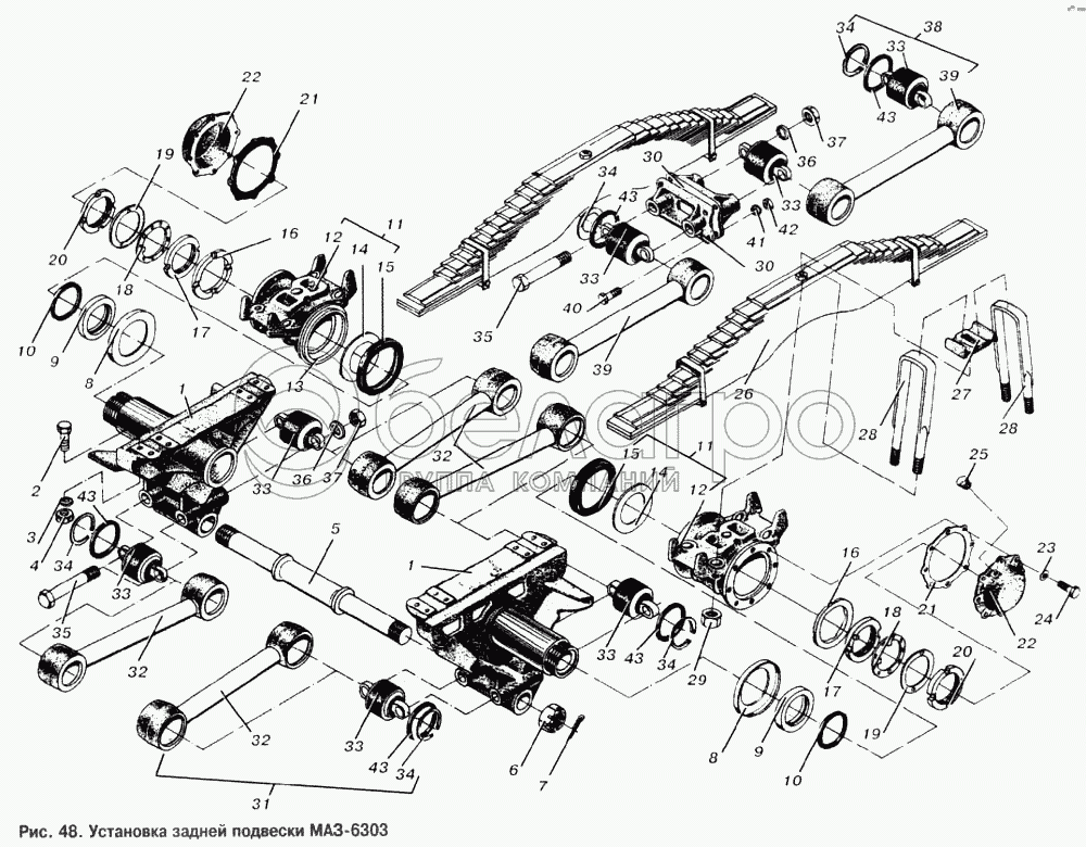 Каталог запасных частей к технике: МАЗ-53363. Установка задней подвески МАЗ-6303