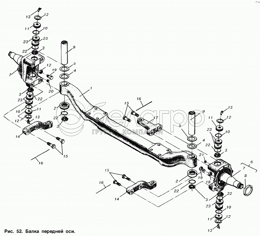Каталог запасных частей к технике: МАЗ-53366. Балка передней оси