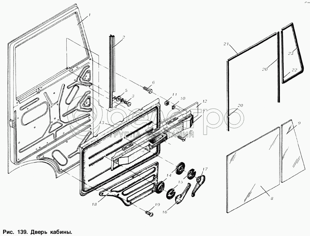 Каталог запасных частей к технике: МАЗ-53366. Дверь кабины