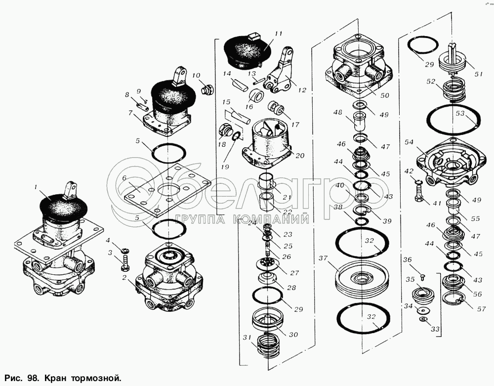 Каталог запасных частей к технике: МАЗ-53366. Кран тормозной