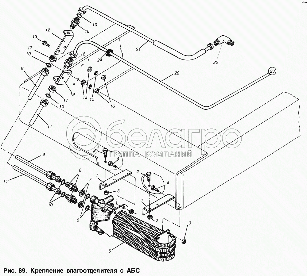 Каталог запасных частей к технике: МАЗ-53366. Крепление влагоотделителя с АБС