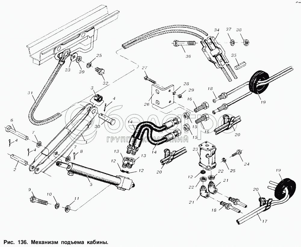 Каталог запасных частей к технике: МАЗ-53366. Механизм подъема кабины