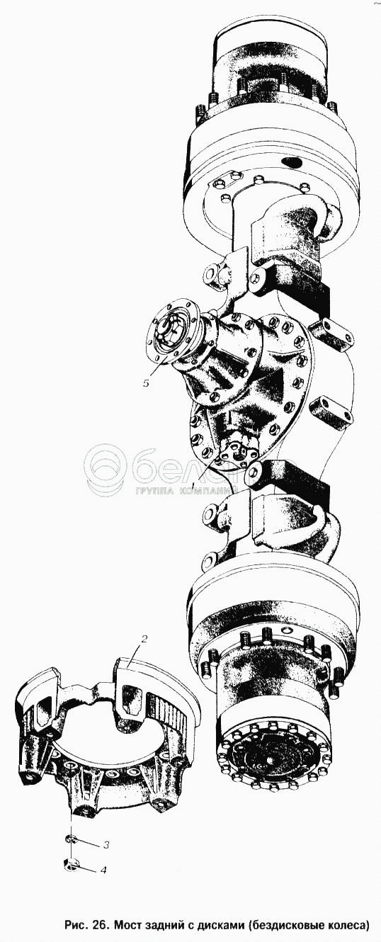 Каталог запасных частей к технике: МАЗ-53366. Мост задний с дисками (бездисковые колеса)