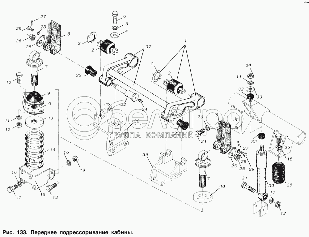 Каталог запасных частей к технике: МАЗ-53366. Переднее подрессоривание кабины