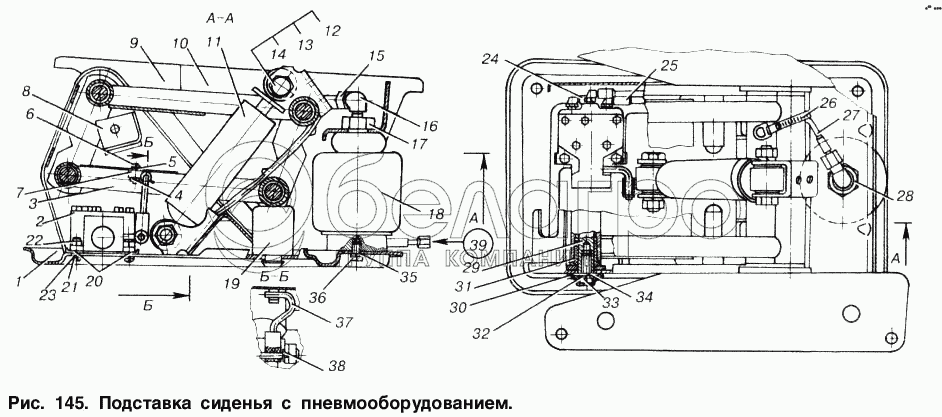 Каталог запасных частей к технике: МАЗ-53366. Подставка сиденья с пневмооборудованием