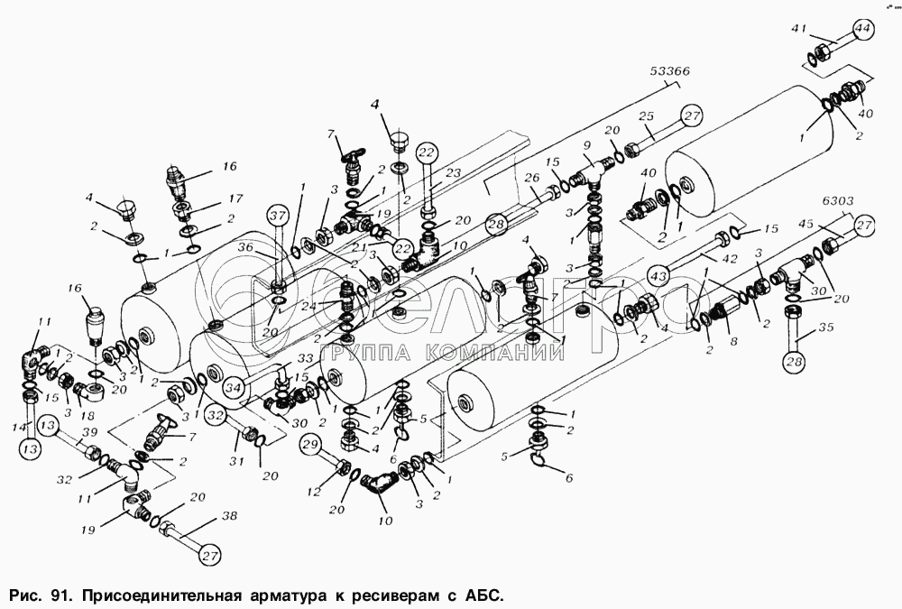 Каталог запасных частей к технике: МАЗ-53366. Присоединительная арматура к ресиверам с АБС