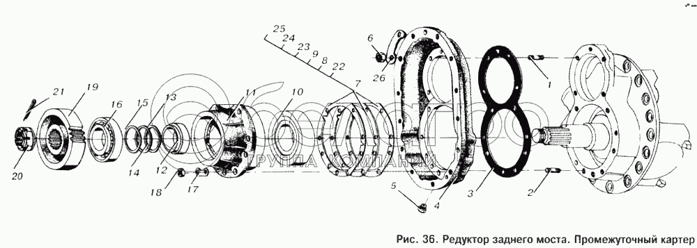 Каталог запасных частей к технике: МАЗ-53366. Редуктор заднего моста. Промежуточный картер