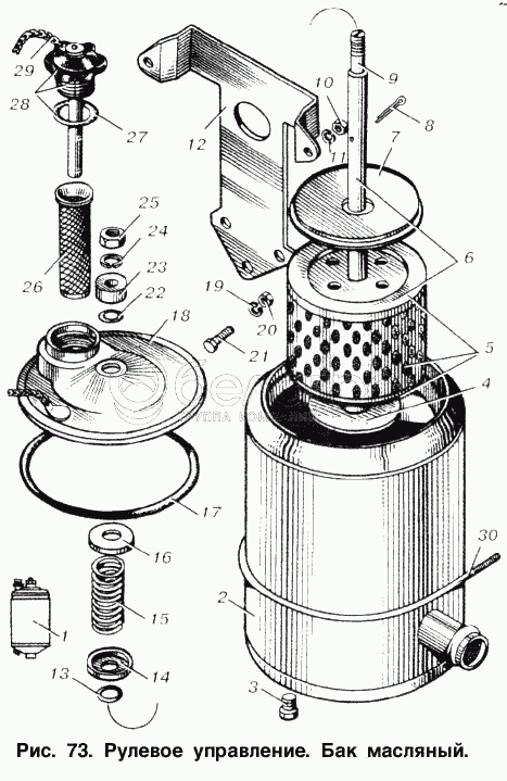 Каталог запасных частей к технике: МАЗ-53366. Рулевое управление. Бак масляный